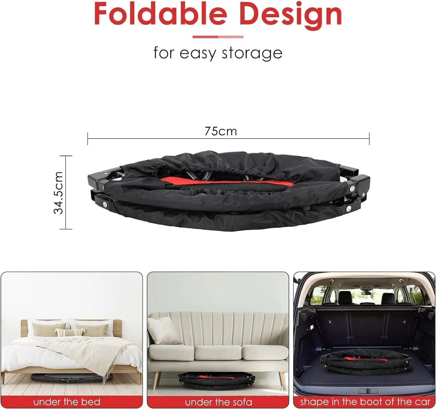 Mini trampoline pliable, trampoline d'exercice avec poignée réglable, trampoline de rebond pour adultes, trampoline d'intérieur